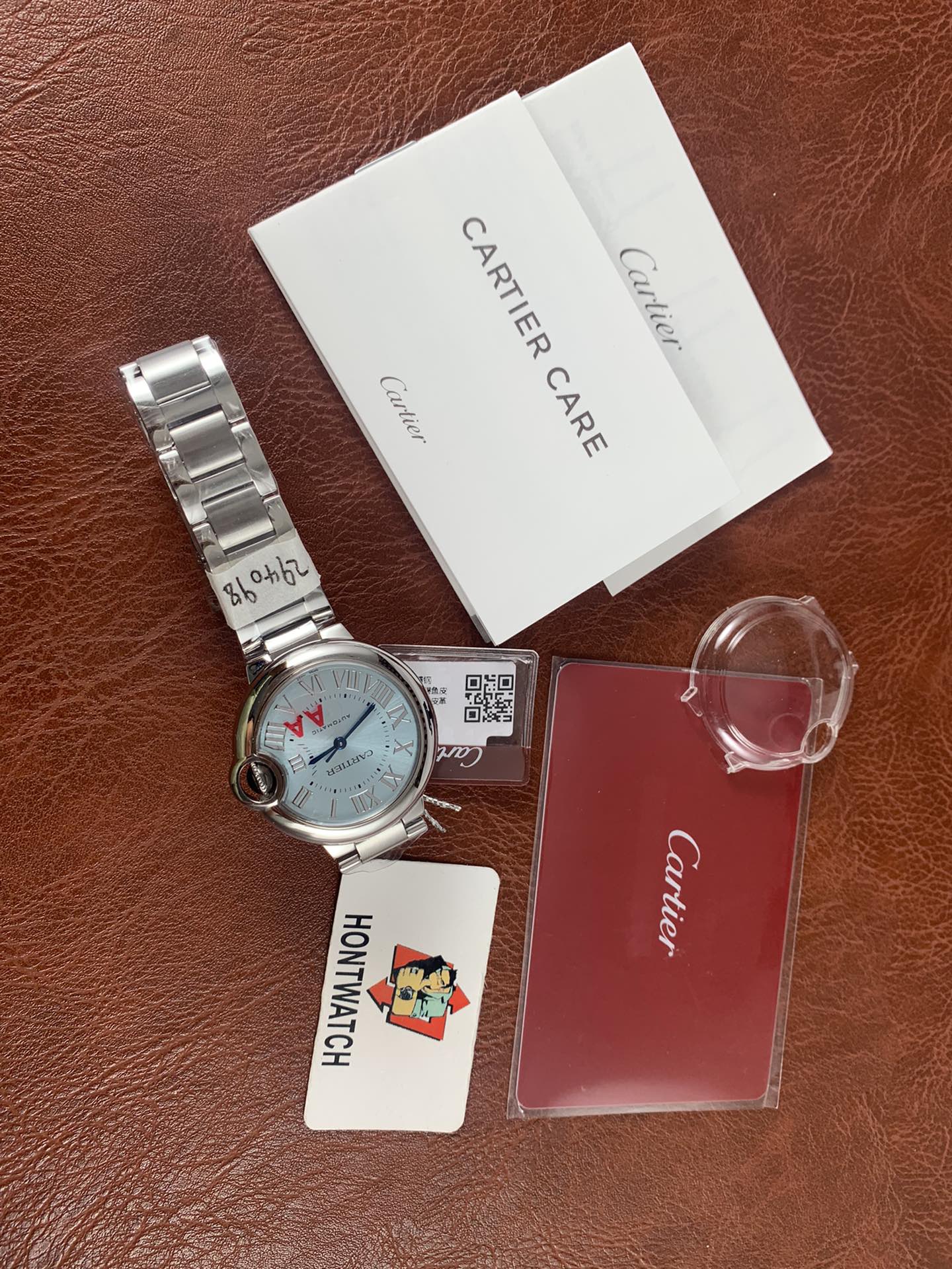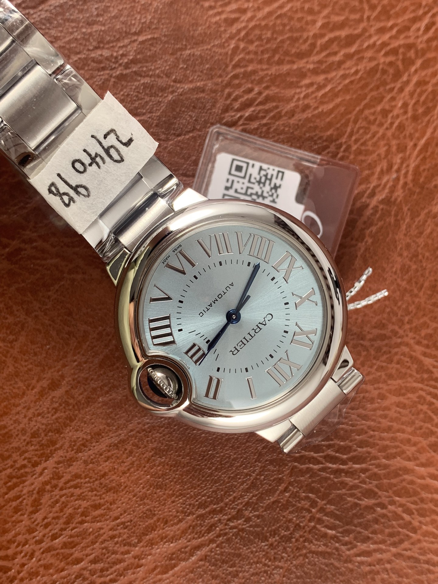 Cartier watches from the Ballon Bleu De Cartier collection. Classic ladies watches Cartier Ballon Bleu 33 WSBB0062 premium quality equipped with a reliable automatic self-winding mechanism (powered by arm motion amplitude) of the caliber 076, in which implemented the following functions: hour, minute and second hands, as well as the most simple functionality without complications. The round watch case, which is 33 mm in size and 10 mm in height, will perfectly complement the image and decorate the wrist of its wearer. For manufacturing Cartier Ballon Bleu 33 WSBB0062 watches offered in our online store, use high quality 316F stainless steel (Swiss standard), as well as high strength sapphire glass, thus providing maximum protection against chipping and mechanical damage. The distinctive feature of this model is the blue dial, the hour indices of which provide Roman numerals. Completes the Cartier stainless steel bracelet with a steel-colored folding clasp. The waterproofness of this model is 30M (WR30)- minimal exposure with water is allowed.